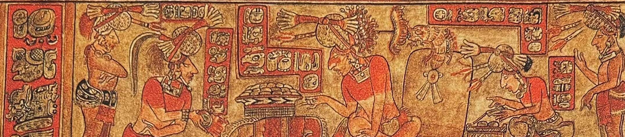 (危地马拉,一幅陶制器皿上的国王接受贡品图画)
