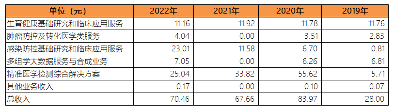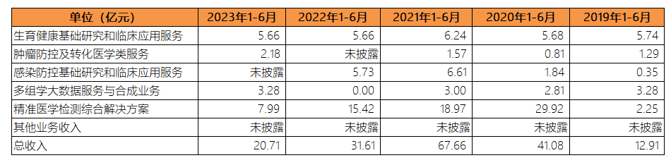 随着新冠疫情得到控制,华大基因业绩也开始下滑。在2023年上半年年报中,华大基因近5年来首次没有单独拆解感染防控业务。从往年财报来看,华大基因的新冠核酸检测业务便是核算在这一业务板块。