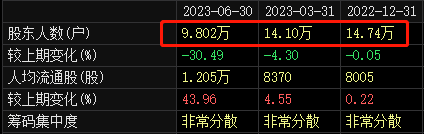 韦尔股份今年半年报的股东户数来看,有9.8万户,跌破10万,比今年一季度末和去年末的超14万户大幅减少。