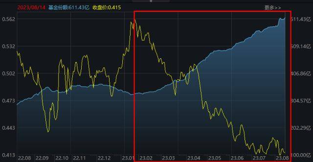 此外,还有巨量资金借道医药医疗类ETF逆市揽筹。以医疗板块顶流医疗ETF(512170)为例,上周(8月7日-11日)累计获逾8.8亿元资金净申购,本周一再获2.47亿元资金逆市涌入。若将时间拉长至年内,资金逆行增仓情况更加明显。从医疗ETF(512170)基金份额与二级市场价格对比图来看,二者年内走势截然相反。