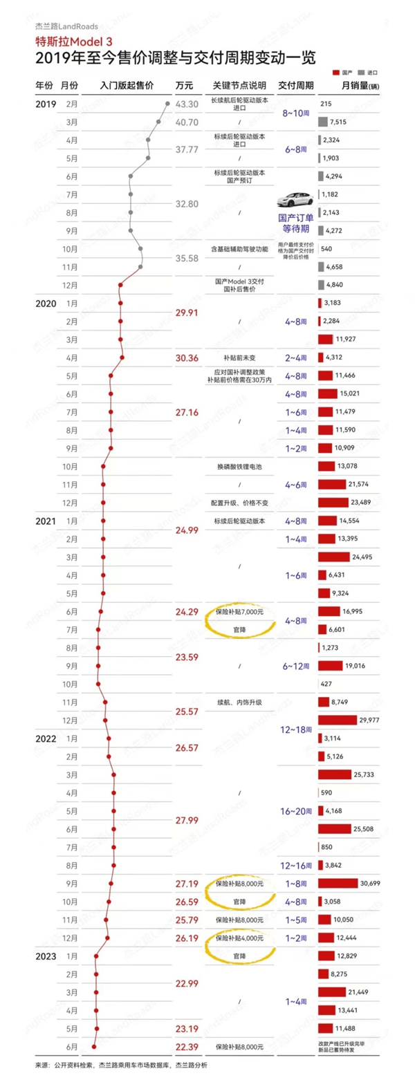 据统计,自2019年Model 3在中国发售至今,售价已经下降近50%。
