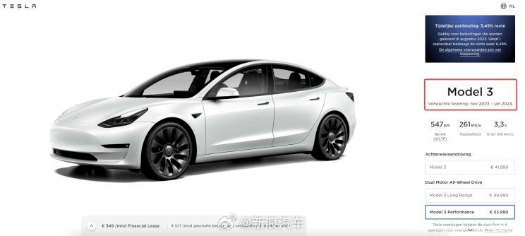 目前在欧洲市场,现款Model 3后驱和长续航版交付时间为2023年10-11月,Performance版(高性能版)预计交付时间为2023年11月-2024年1月。