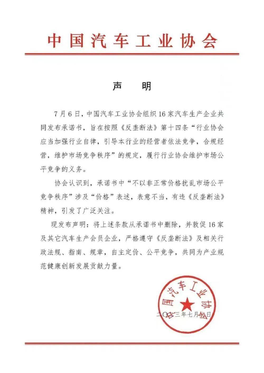 7月6日,中国汽车工业协会出面拉着16家车企签了个“君子协议”,承诺“不以非正常价格扰乱市场”。