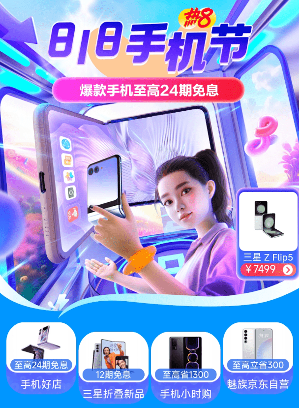 近日,京东联合各大手机厂商举办的 818 手机节,届时在京东购买折叠屏手机,不仅能享受 180 天只换不修,还有以旧换新至高补贴 1500 元。打开京东 APP 搜索 “ 818 手机节 ” 即可进入会场。
