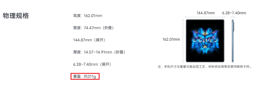 其中荣耀 Magic V2 的整机重量只有 231g,比 iPhone 14 Pro Max 还轻上了 9g,华为 Mate X3 则是 239g,其它折叠屏手机重量也得到了大幅降低: