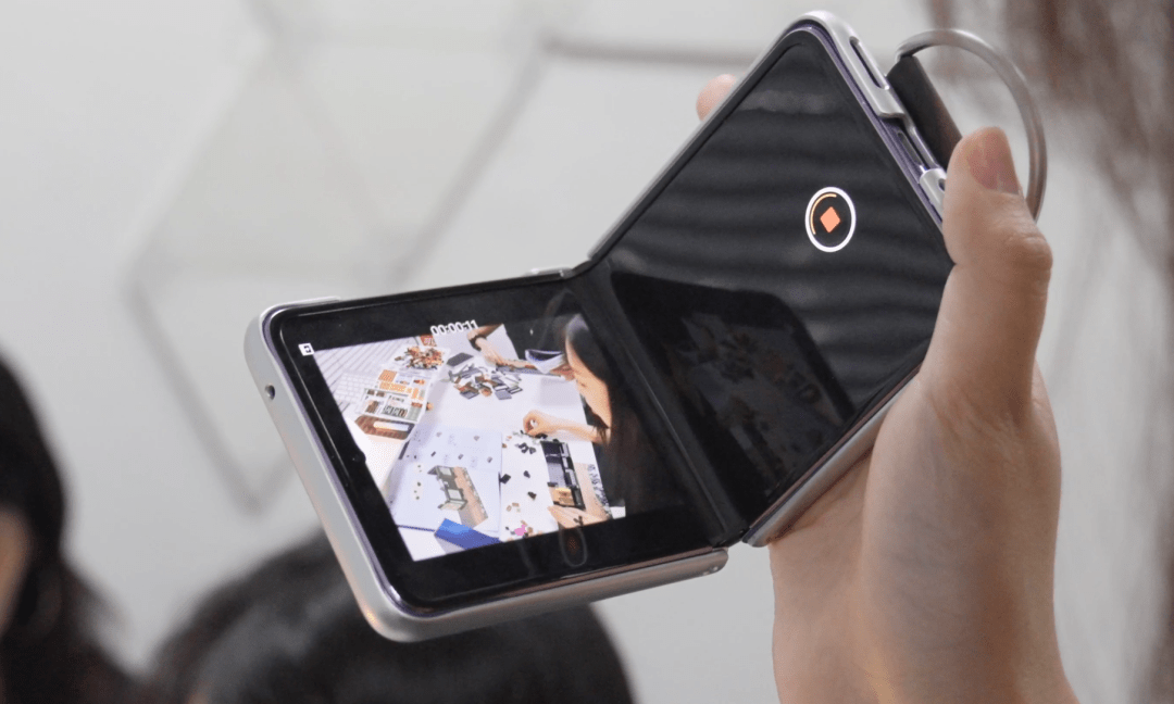 另外得益于竖折手机铰链支持多角度悬停并且还有外屏存在,拍照录视频我们只要把手机往外那么一折,然后把它往桌子或者地上一摆还挺方便。