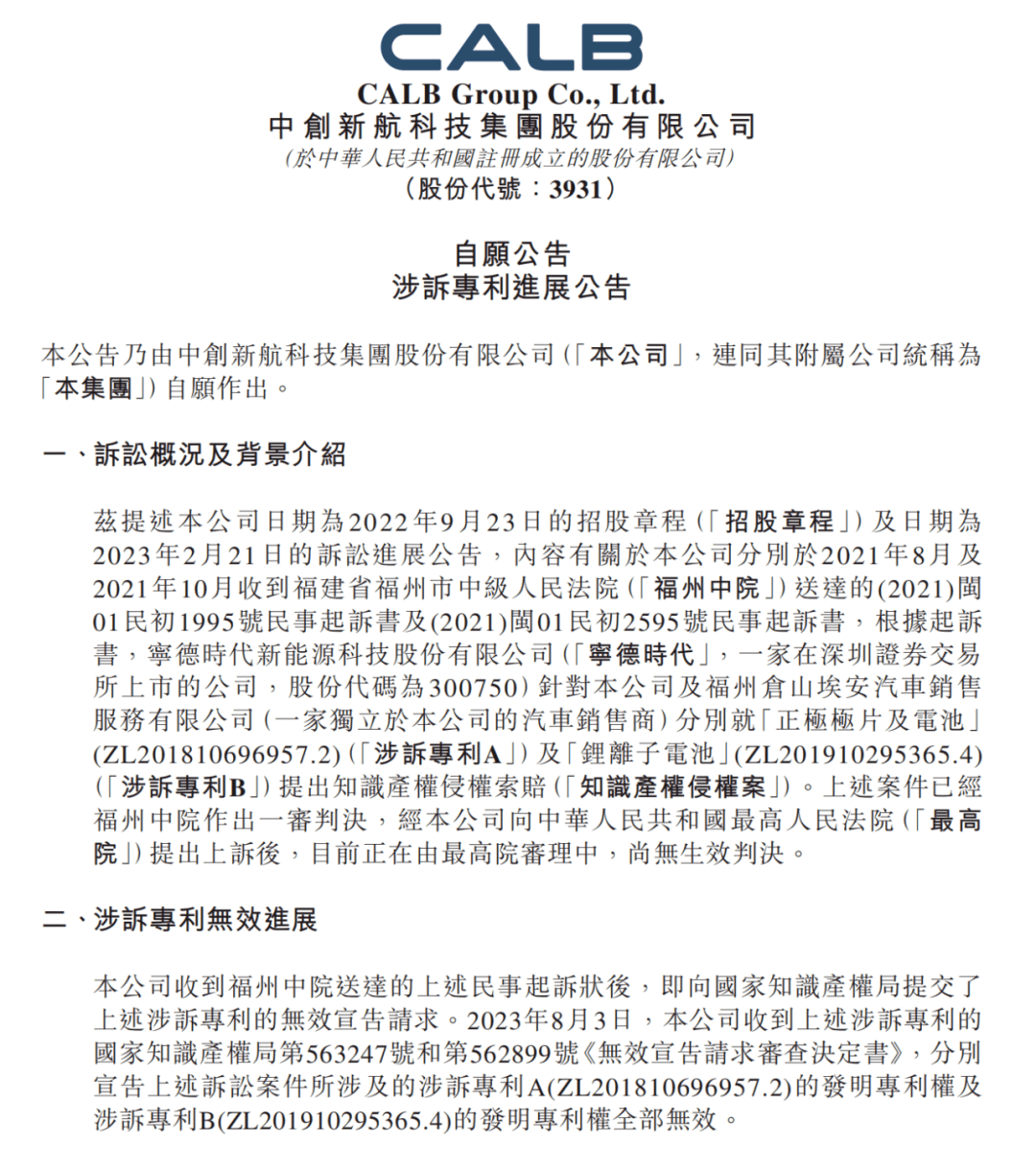 资料显示,曾先后于2021年8月和10月收到福州中院送达的「正极极片及电池」和「锂离子电池」两份涉及专利侵权民事起诉书,并要求给予专利持有人累计1.08亿元的索赔。