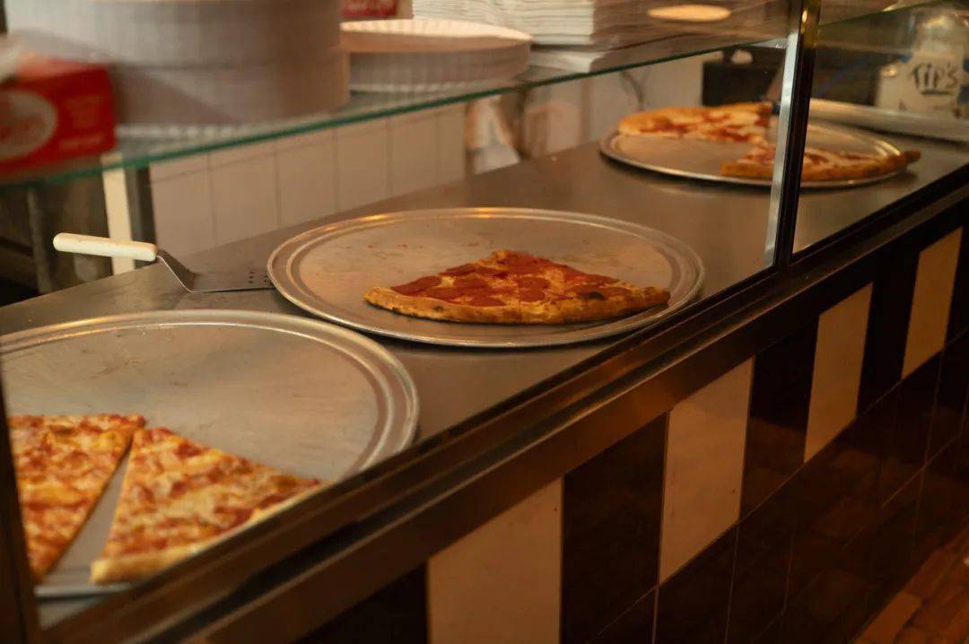 披萨在20世纪早期随着意大利移民潮来到了美国,世界大战后在意大利的美国士兵的回归让披萨在美国得到了更大的拓展和认知,据统计在任何一天都有13%的美国民众会食用披萨。美国的第一家披萨专门店开立于1905年的纽约小意大利区域,而纽约也成为了美国披萨发展的根基。在纽约的大街小巷遍布着0.99美元披萨站,无论职业与年龄,繁忙的纽约客们总会在休憩、派对、放学后买上一片不到1美元的芝士披萨或是意式辣香肠披萨,配上一罐碳酸饮料,便是不错的充能补给。