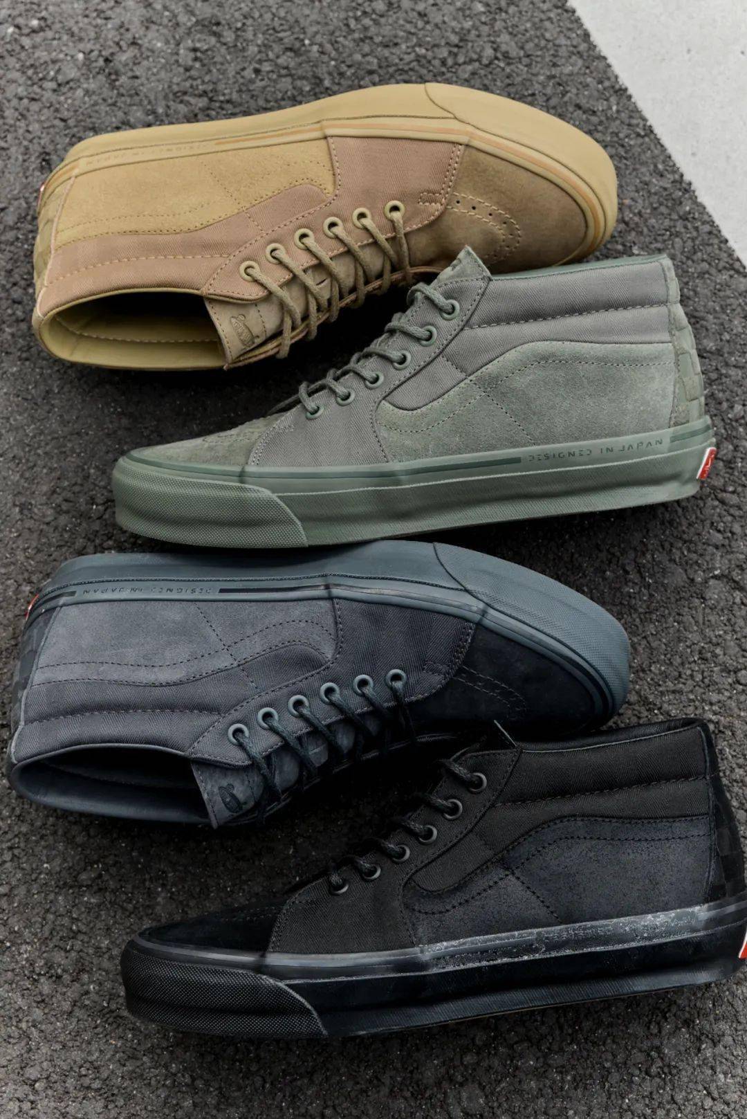 本季,Vans 以 Sk8-Mid Reissue 83 Mg 为蓝本展开创意构想,共推出四双鞋款,为 Vans TDC 设计师系列扩充档案库。系列以“构建格调”为主题,选用了浅棕色、黑色、灰色以及墨绿色四款纯色方案进行诠释。此外,该系列还配备了多种服饰单品,囊括了夹克、连帽衫、运动衫和梭织长裤。