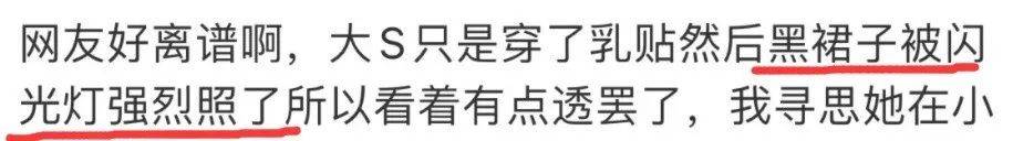 不过也有网友解释说:大s的裙子是被闪光灯强烈的照了所以看着有点透罢了。