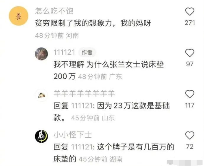 听说这23万的床垫还是基础款,这个牌子顶配的床垫要几百万。