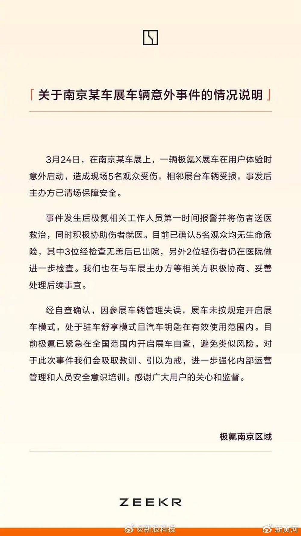 参展车突然启动撞伤5人?极氪回应:管理失误,未按规定开启展车模式