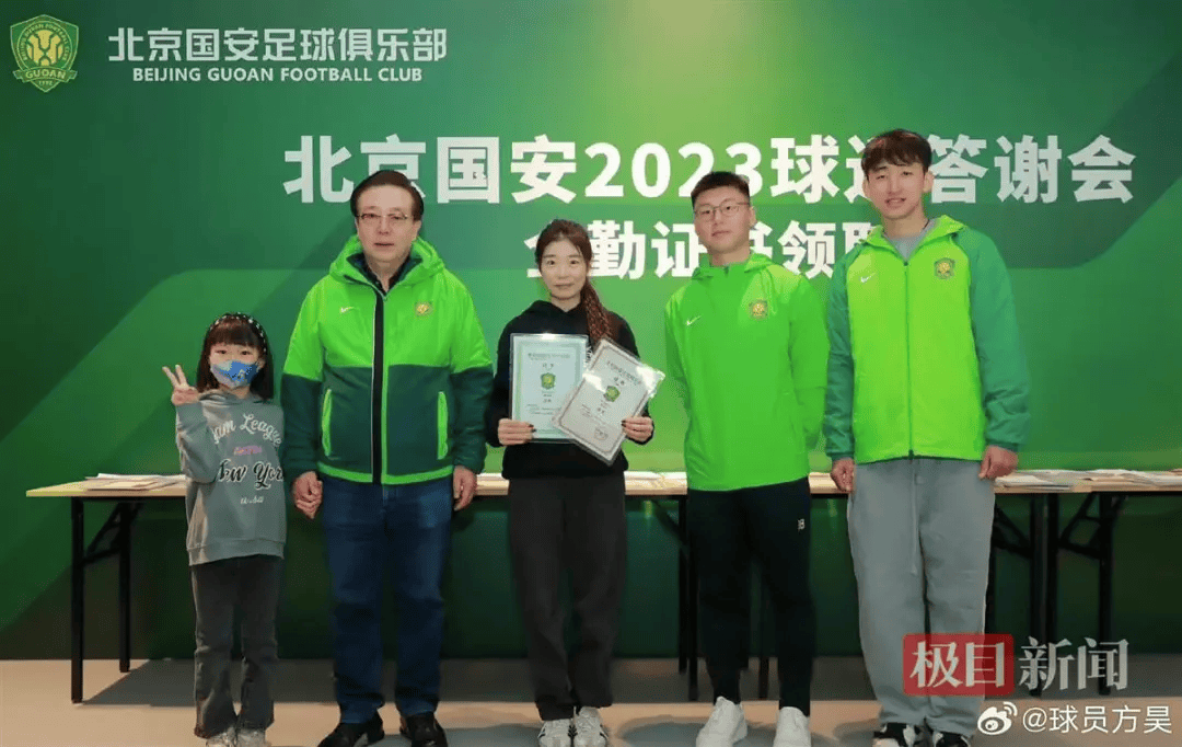 杨雪(左三)去年获颁国安“全勤奖”来源:方昊微博