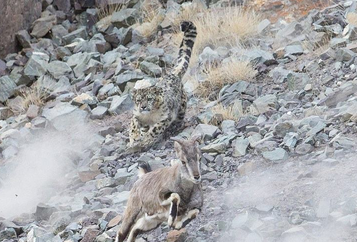 原创 濒危动物:雪豹为生存捕岩羊,坠落120米悬崖奇迹生还