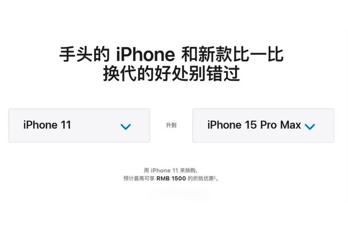 在库克对于中国消费者表达出极大的善意之后,越来越多的人发现苹果中国官网已经开始引导大家换手机——把你们手中的旧苹果iPhone换成最新的iPhone15吧,官方对以旧换新给出大额补贴。
