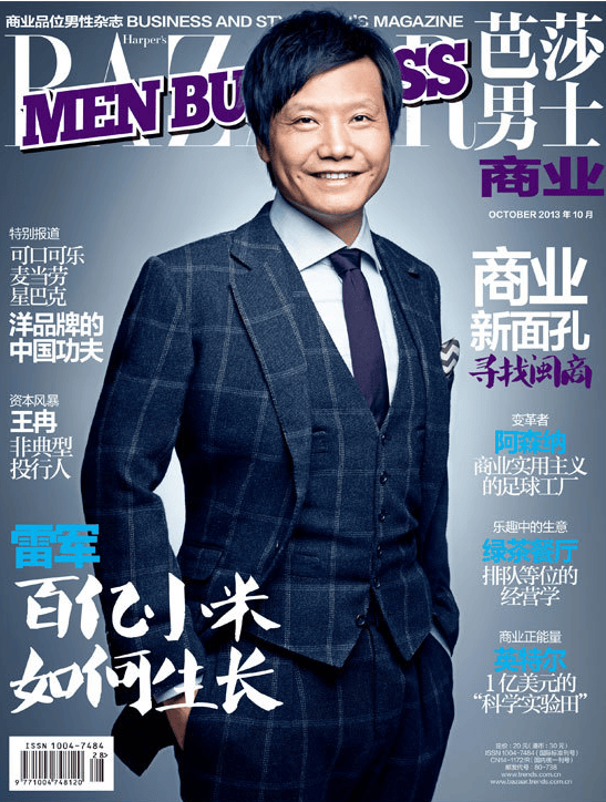 那几年“雷布斯”造型开始火出圈,他在个人形象上也越来越大胆出位。2013年,正式登上《芭莎男士》商业版的封面,还被评为“品位成功年度人物”。