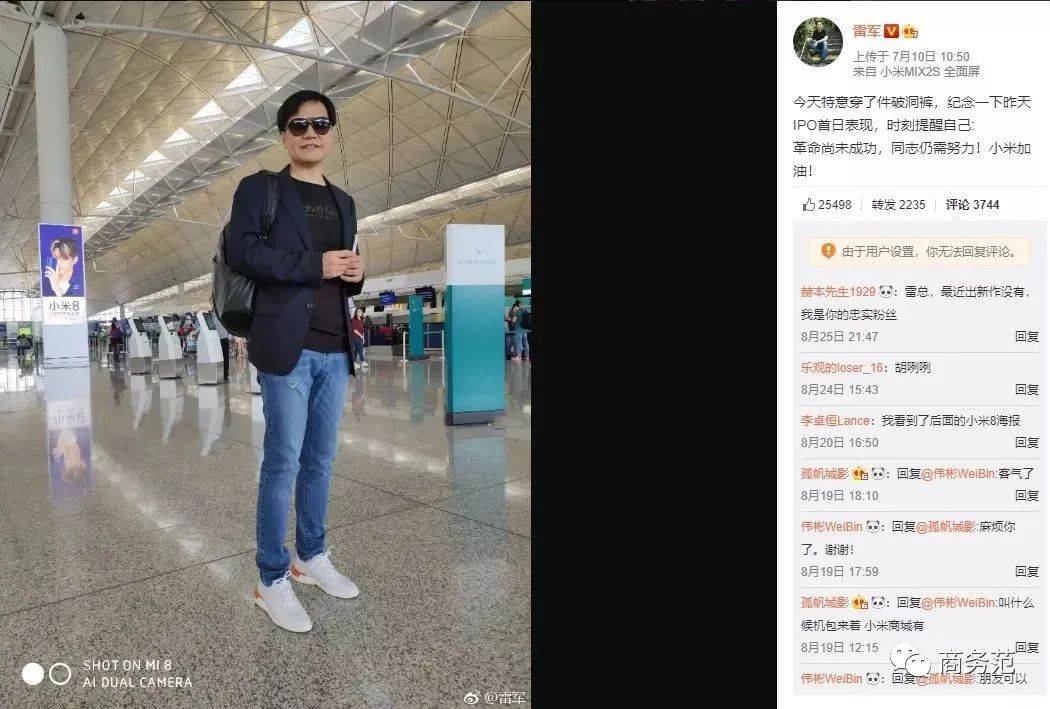 2018年小米上市当天破发,他更不忘穿条破洞牛仔裤调侃自己一下,还顺势在小米商城卖起了同款牛仔裤,189元就能拿下~