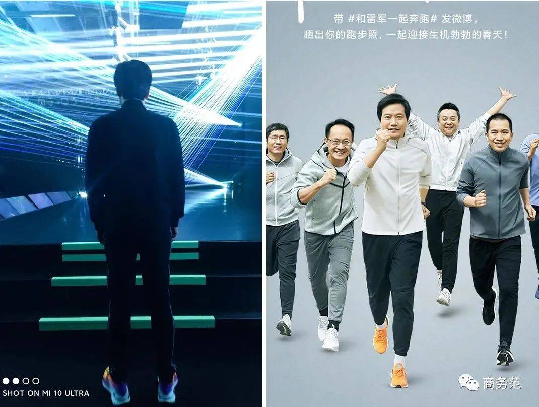 高管们也立刻从衣柜中找出运动衫,配上boss同款笑容,和雷总一起小跑进入春天↓