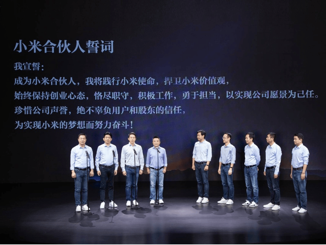不仅要穿同款,拍照也得copy同款姿势,雷军偶尔想搞点正式,高管们也要陪着正式。当年一张高管照,就集体穿了西裤配西装,着重凸显精英感和老钱风,突然消失的牛仔裤还引来外界一阵解读。
