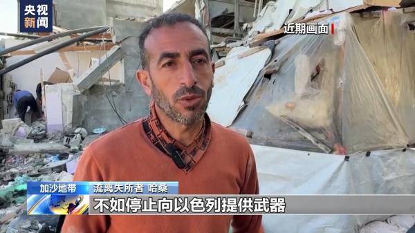 加沙地带流离失所者 哈桑:与其告诉我们说,他们会建一个港口来帮助我们,不如停止向以色列提供武器。所有那些来自美国的武器随时随地都在杀死我们和我们的孩子。